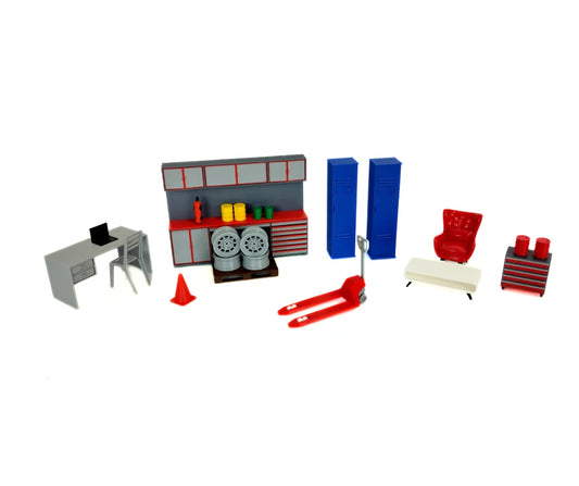 Оборудване за автосервиз Mащаб 1:43 Диорама комплект с мебели и фигури