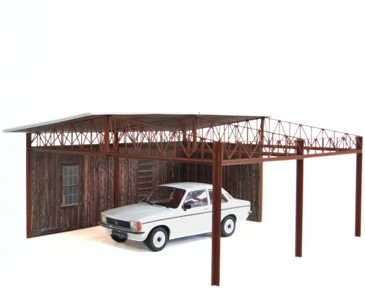 „Дървен“ Ретро Навес за Автомобили 1:18