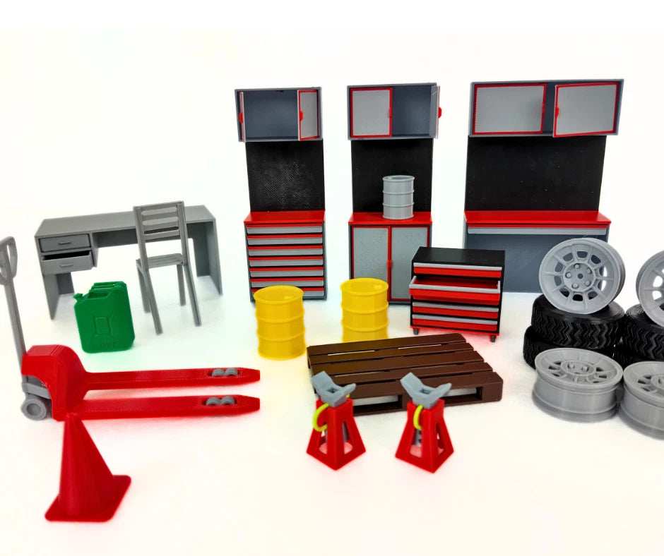 Комплект мебели и инструменти за авто сервиз 1:18 – Диорама аксесоари от здрав пластмасов материал