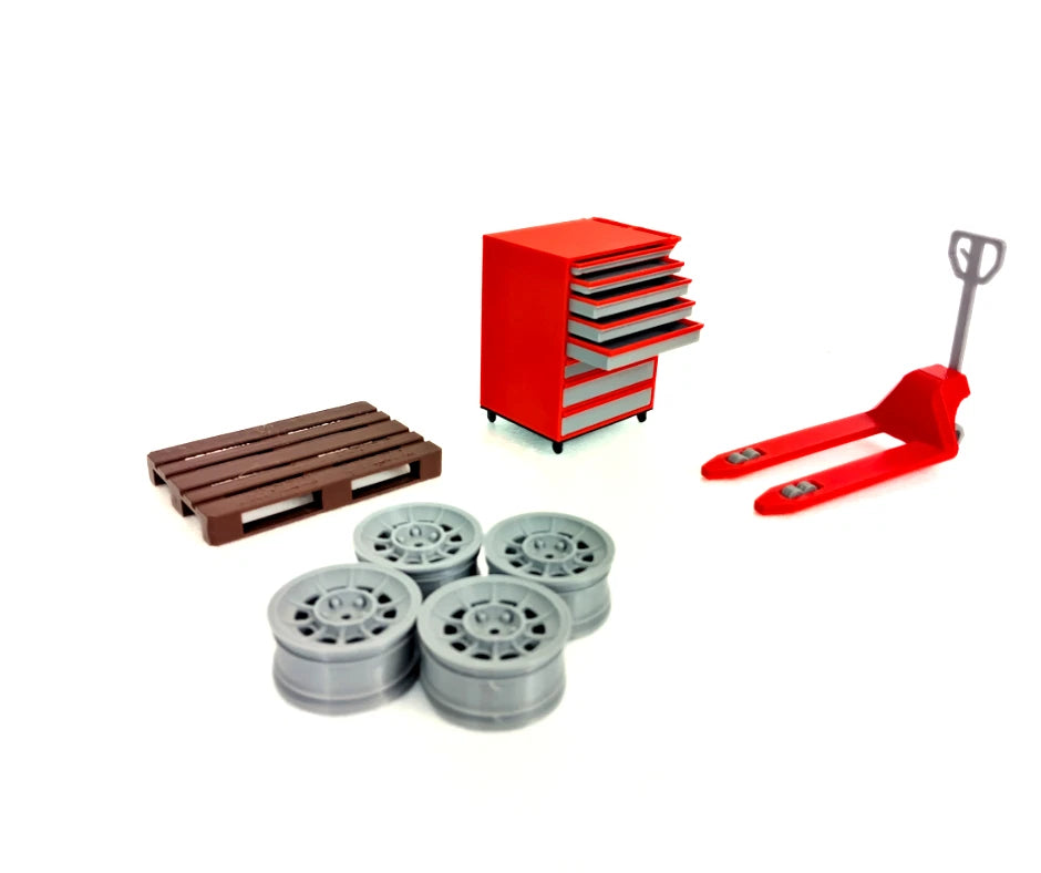 Комплект оборудване за авто сервиз 1:18 – аксесоари за диорама гараж