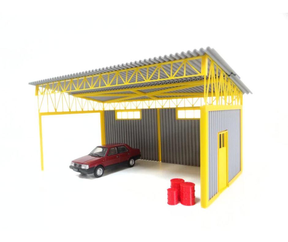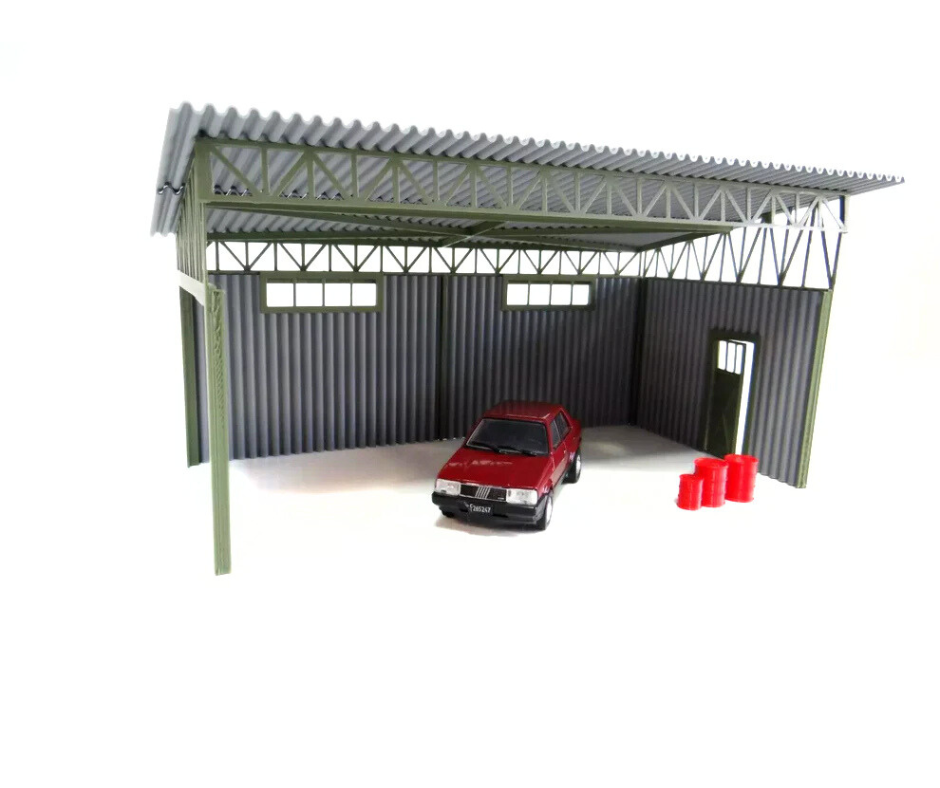 🏗️ Метален навес тип ''ламаринен покрив'' в мащаб 1:43 – идеален аксесоар за диорами и дисплей за умалени модели на автомобили.