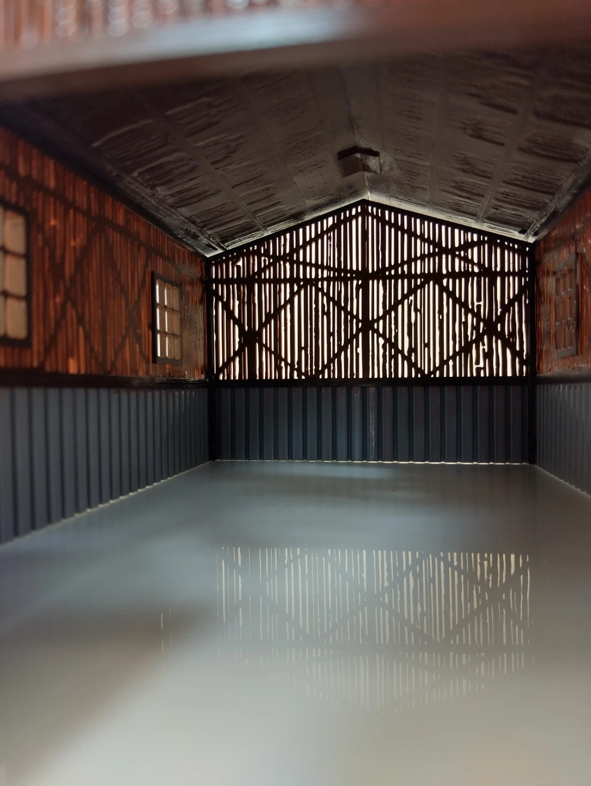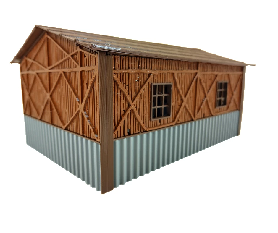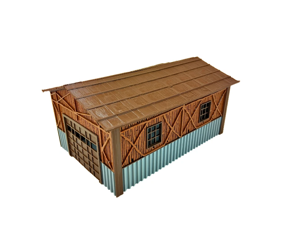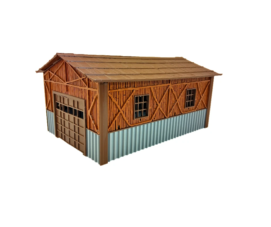 Реалистична селска плевня/хангар в мащаб 1:43 за диорами и автомобилни колекции. Лесен монтаж, детайлна текстура, идеална за селски, фермерски и винтидж сцени.