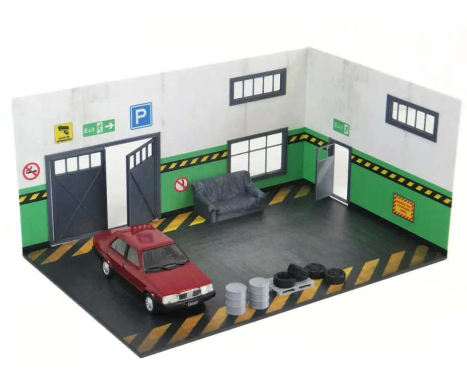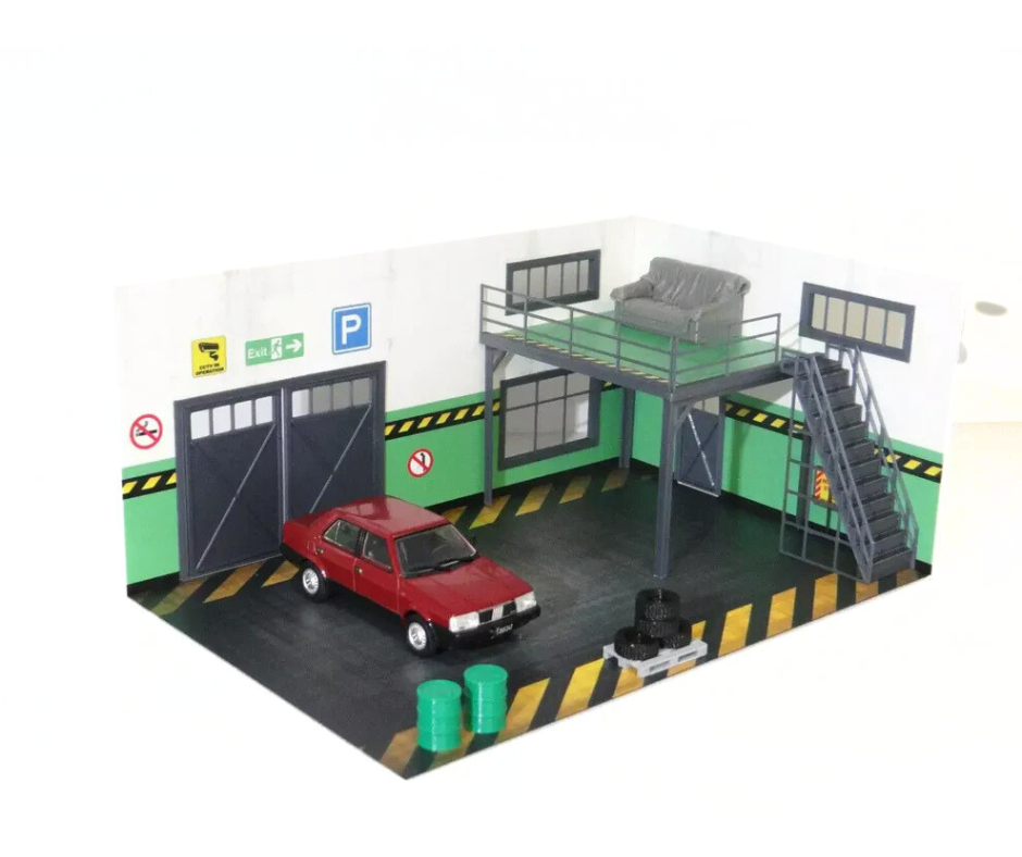 🛠️ Сервизен гараж 1:43 Диорама Комплект | Модел за коли в мащаб 1:43
