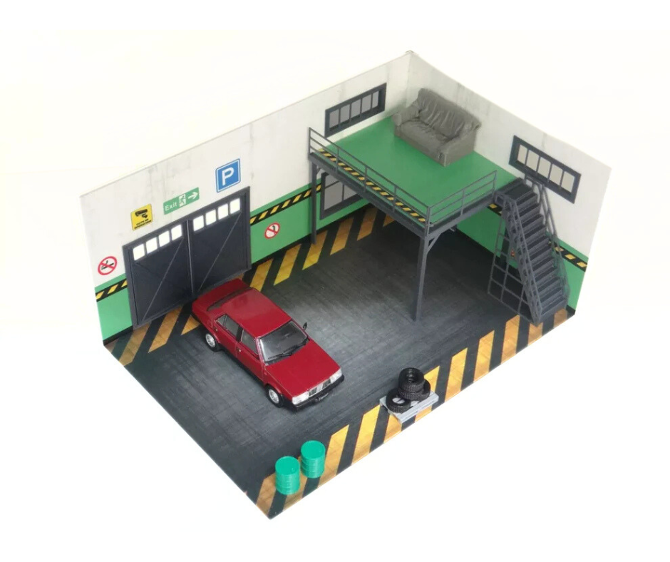 Този висококачествен диорама комплект е идеален за изложба, фотография и видеозаснемане. Със своите подробни елементи и автентичен гаражен декор, той ще бъде перфектния фон за вашите миниатюрни превозни средства.